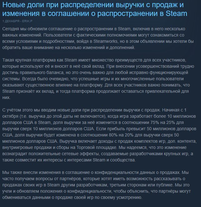 Тот факт, что Юбисофт до сих пор не покинули Стим говорит о том, что преимущества предоставляемые им вполне способны компенсировать 30% забираемые Гейбом. Юбики нереально прагматичны во всем что делают, так что явно все просчитали. Сейчас так вообще наверное шампанское хлещат всем рук. составом в свете последних новостей про уменьшение процента. В то же время ЕА 100% кусают локти поспешив с уходом.